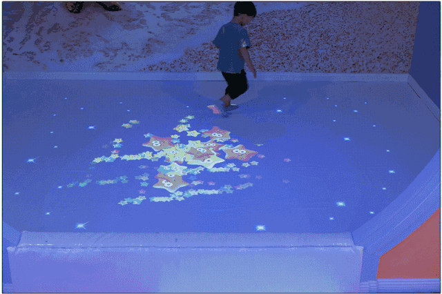 在商場或?qū)W前教育等場景下,互動投影為孩子們提供了十分趣味的游樂形式。打造虛擬的場景,配以美輪美奐的畫面,天上的小鳥,地上的魚群,都能和小朋友互動起來。